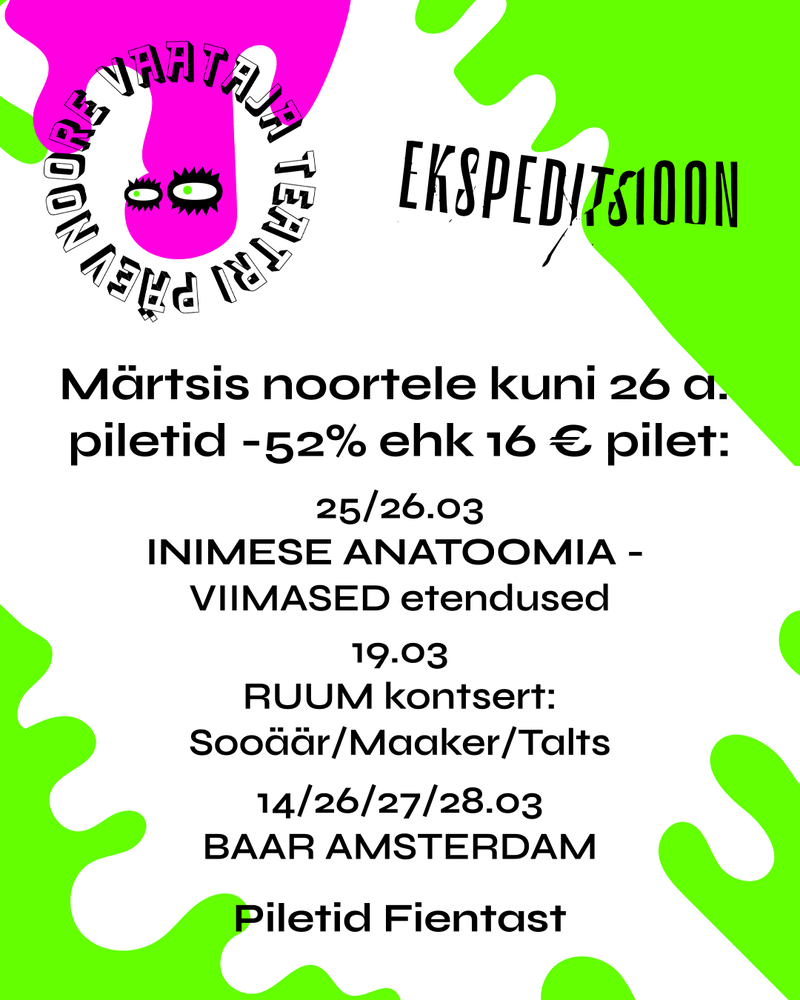 Selle aasta märts on sümboolselt kuulutatud noore vaataja teatri kuuks, et tuua tähelepanu keskmesse noored ja nende suhe teatriga. Algatuse eesmärk on kutsuda noori teatrisse, kuulata nende mõtteid ja otsida viise, kuidas teater saaks rohkemate noorteni jõuda. Tähtsustame seda ka Ekspeditsioonis.